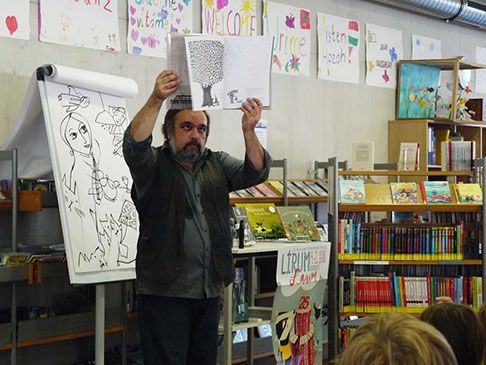 Mehrdad Zaeri, ein Autor, der gebürtig aus dem Iran kommt, entführte die Schüler_innen am 15. Oktober 18 auf eine bunte Blumenwiese. Er las im Rahmen des Lirum Larum Lesefestes in der Mediothek aus seinem neuen Buch „Der Mann, der eine Blume sein wollte“.